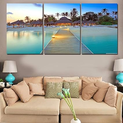 Kkjj Quadri Su Tela Per Soggiorno Stampa Di Paesaggi Marini In Hd Immagini Multipart Per Corridoio Cucina Camera Da Letto Non Tramontera Mai 3 Pezzi Senza Cornice C 70x150cm Amazon It Casa E