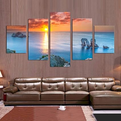 Homedcr Decorazioni Per La Casa Stampe Hd Quadri Su Tela Poster Da Parete 5 Pezzi Dipinti Con Paesaggi Marini Immagini Di Soggiorni Amazon It Casa E Cucina