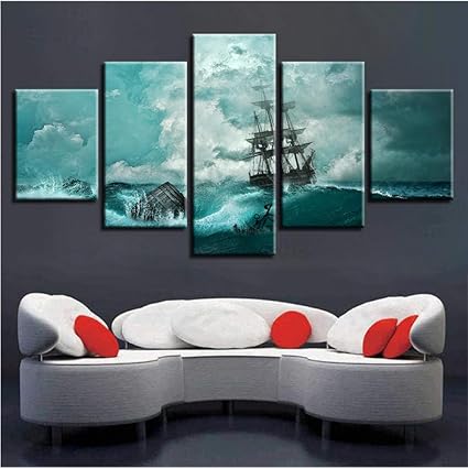 Nvhaishiwo Retro Quadri Su Tela Decorazioni Per La Casa Modulari 5 Pezzi Tempesta Oceano Wave Veliero Dipinti Di Paesaggi Marini Stampe Hd Poster Wall Art Framework Popolare Amazon It Casa E Cucina