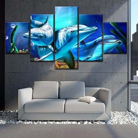Klkkl Quadri Su Tela Home Decor Cornice 5 Pezzi Animali Marini Delfino Pittura Stampe Modulari Poster Soggiorno Wall Art Amazon It Casa E Cucina