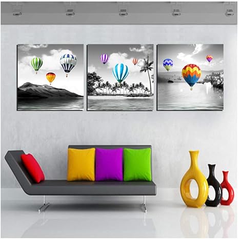 Huizheng Quadri Su Tela Stampe Mongolfiera Immagini Pitture Su Tela Con Paesaggi Marini Per Soggiorno Pittura Murale Quadro Senza Cornice 60x60cmx3 Amazon It Casa E Cucina