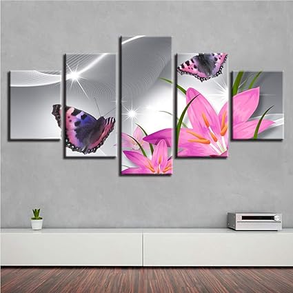 Meaosy Quadri In Tela Modellata Cornice Decorativa 5 Stampe Gigli Rosa Fiori E Farfalle Paesaggi Marini Poster Immagini Da Parete 30x40x60x80cm Amazon It Fai Da Te