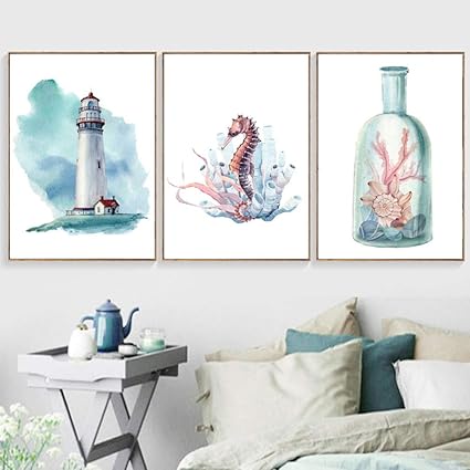 Hpkcine Beacon Animali Marini Stampe Su Tela In Stile Nordico Pittura Decorazioni Per La Casa Arte Murale Quadri Modulari Acquerelli Poster Per Camerette Amazon It Casa E Cucina