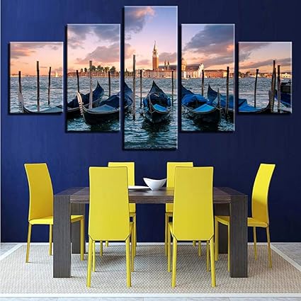 Zxdcd Quadri Su Tela Home Decorazioni Per La Parete Di Casa 5 Pezzi Dipinti Di Paesaggi Marini Per Barche In Barca Paesaggio Urbano Al Tramonto Sul Mare Stampe Poster 20x35cmx2 20x45cmx2 20x55cm Amazon It