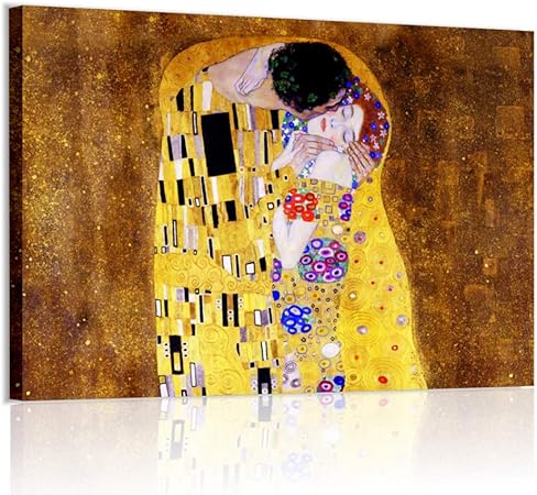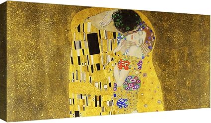 Quadri Moderni Stampa Su Tela A358 Gustav Klimt Il Bacio Larghezza 100cm X Altezza 60cm Pronto Da Appendere Gia Intelaiati Amazon It Casa E Cucina