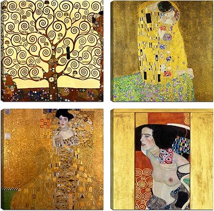 Canvashop Klimt Composizione 4 Pezzi Cm 40x40 Cad Quadri Moderni Quadrati Stampa Su Tela Canvas Quadro Albero Della Vita Il Bacio Ritratto Di Adele Giuditta Amazon It Casa E Cucina