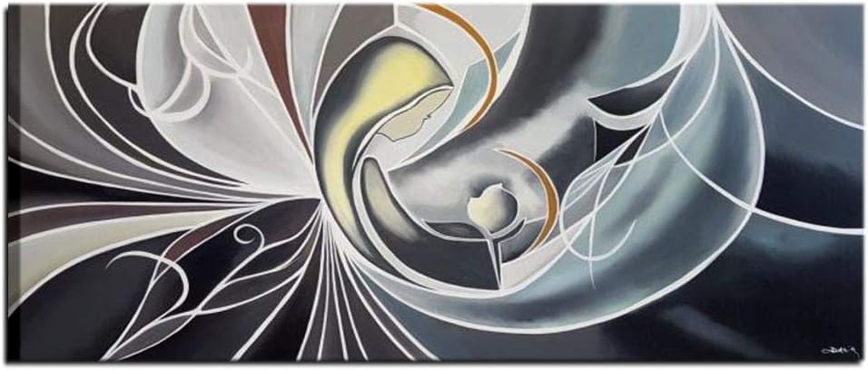 Quadri Moderni Religiosi Sacri Per Camera Da Letto Capezzali Olio Su Tela Dipinti A Mano Religiosi Grigio E Bianco Con Brillantini Glitter Maternita Madonna Con Bambino Luce Di Stella Amazon It Casa