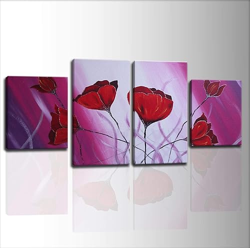 Quadro Multipannello Moderno Per Soggiorno Quadri Fiori Dipinti A Mano Su Tela Con Glitter Argento 4 Pannelli Componibili Floreali Decorativi Tulipani Fucsia Pronti Da Appendere Amazon It Handmade