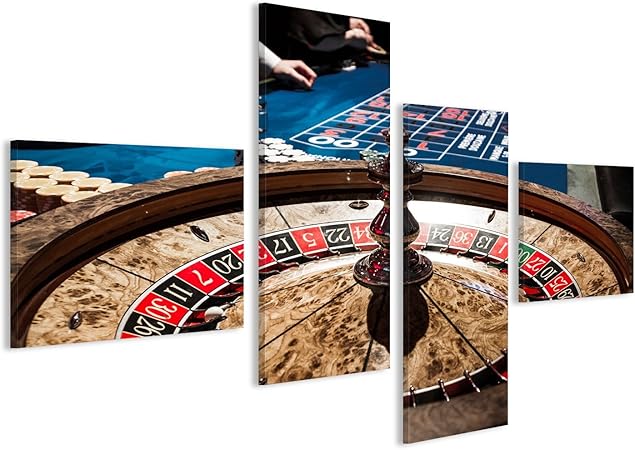 Quadro Moderno Dettagli Di Roulette In Legno Lucido In Un Casino Con Persone Sfocate E Croupier