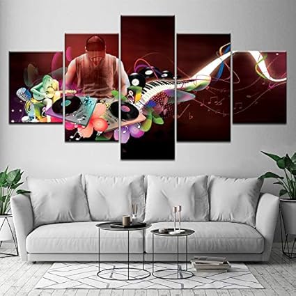 Jasonding Quadro Su Tela 5 Pezzi Black Cool Men Strumenti Musicali Moderni Grandi Quadri Su Tela Quadri Murali Decorazioni Per Camera Da Letto In Tela Stampe Immagini Con Cornice 80cm Amazon It Casa E Cucina