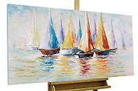 Quadro Moderno Dipinto A Mano Con Barche A Vela Orizzonti