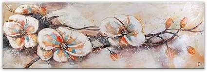 Adm Fiori Bianchi Quadro Dipinto A Mano Floreale Moderno Su Tela Montato Su Telaio Estetico Alto As380x1 Amazon It Casa E Cucina