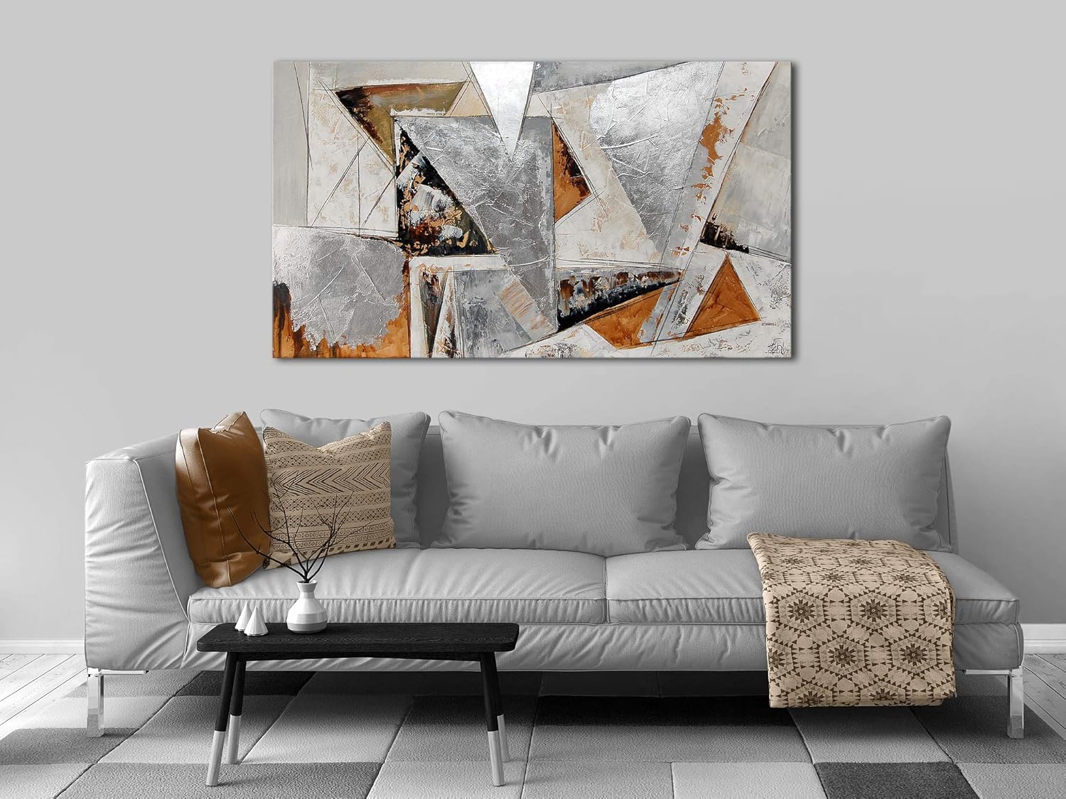 Adm Triangoli Quadro Dipinto A Mano Astratto Su Tela Con Decorazioni In Rilievo E Montato Su Telaio Estetico Alto As434x1 Amazon It Casa E Cucina