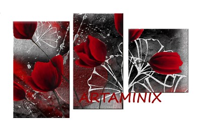 Quadri Moderni Astratti Dipinti A Mano Fiori Tulipani Rossi Arredo Casa Letto Ebay