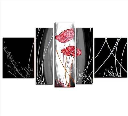 Quadri Moderni Dipinti A Mano Su Tela Per Soggiorno Con Fiori Rossi Quadro Pop Art Rosso Bianco Nero Verticale Senza Cornice Amazon It Handmade