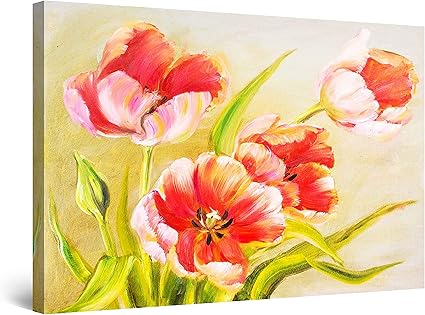 Startonight Quadro Su Tela Tulipani Rossi Quadri Moderni Fiori Stampe Camere Da Letto 60 X 90 Cm Amazon It Casa E Cucina