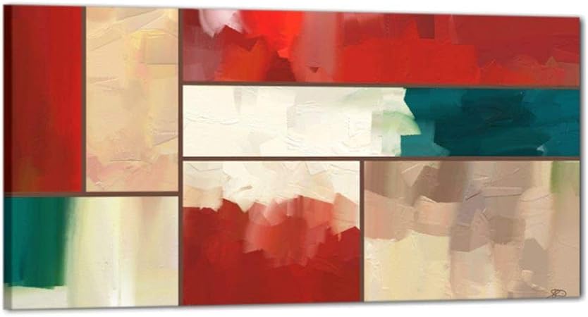 Quadri Moderni Astratti Olio Su Tela Dipinti A Mano Rosso Nero Geometria Ebay