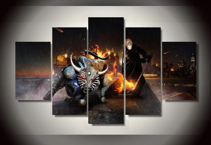 5 Pannelli Di Combattimento Con Il Ferro Bull Quadri Moderni Parete Per Decorazioni Per La Casa Modulare Artwork Soggiorno Hd Spray Su Tela Pittura Panel 5 Paintings On Canvaspainting Paneling Aliexpress