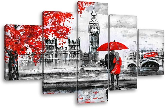 Degona Quadro Moderno London Romance 5 Pz Cm 150x90 Stampa Su Tela Canvas Londra Arredamento Arte Arredo Astratto Xxl Amazon It Casa E Cucina