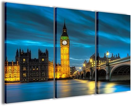 Stampe Su Tela Londra Bing Bang London Ii Quadri Moderni Citta In 3 Pannelli Gia Intelaiati Pronto Per Essere Appeso 120x90cm Amazon It Casa E Cucina