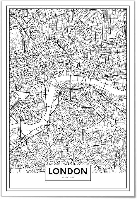 Poster Casa E Cucina Stampe Da Parete Moderne Per Incorniciare Stampato Su Carta 250gr Alta Qualita Decorazione Parete Quadri Moderni Soggiorno Panorama Poster Stampe Da Parete Mappa Nero Di Londra 21 X