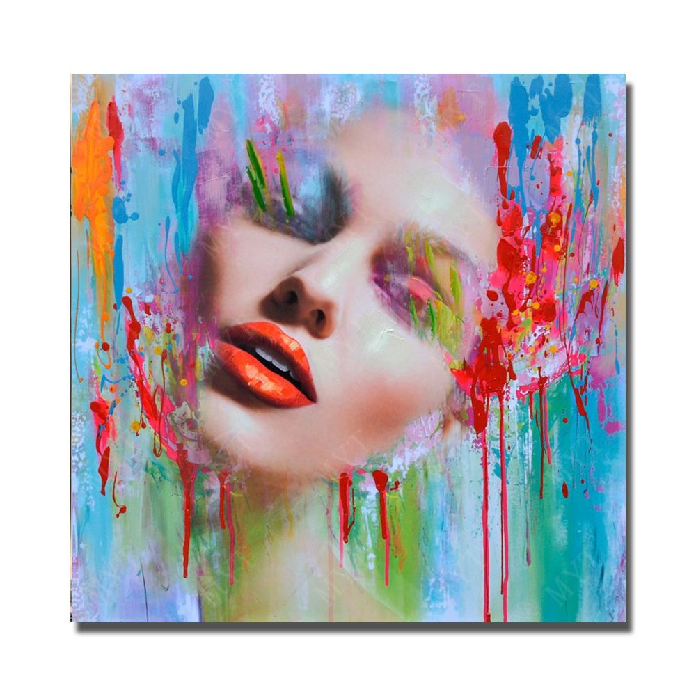 Quadri Su Tela Moderni Quadro Dipinto A Mano Ritratto Di Donna Femminile Rosso Eur 79 00 Picclick It
