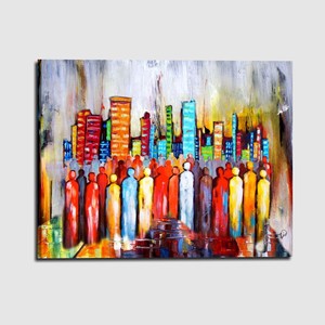 Quadri Dipinti A Mano Moderni Rosso Grigio Quadro Moderno Gente Citta Skyline