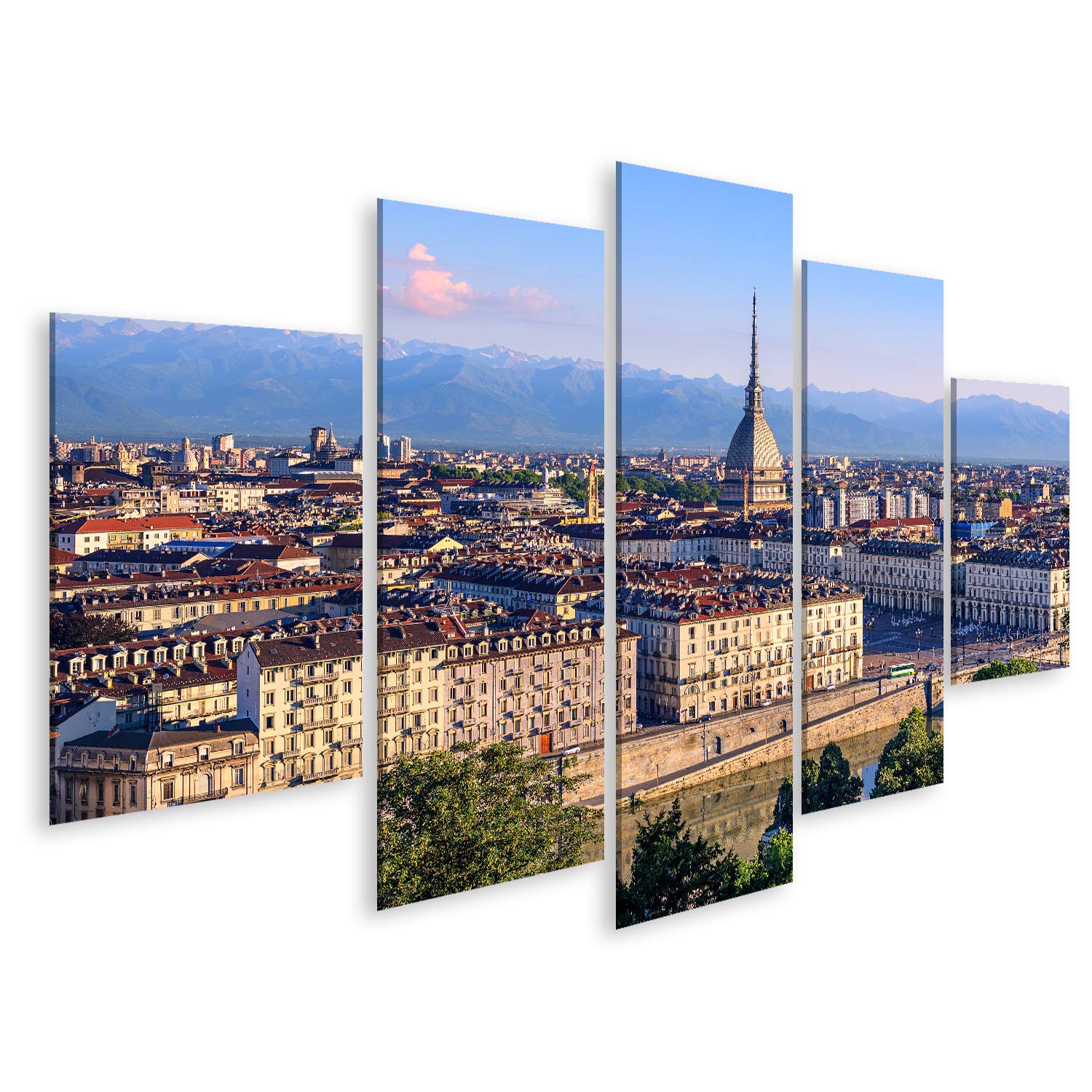 Quadro Moderno Soggiorno Torino Citta Mole Antoneliana Citta 100x70 Cm 5 Pezzi Xxl Quadri Moderni Stampa Tela Canvas Arredamento Salotto Camera Da Letto Cucina Ufficio 100x70 Cm 5pezzi Amazon It Cancelleria E Prodotti