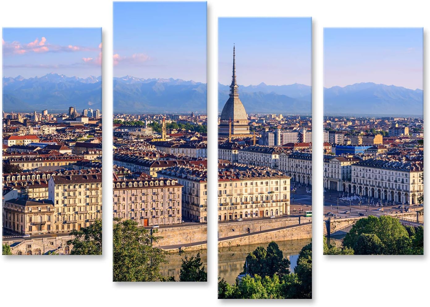 Italia Ute Torino Islandburner Quadro Stampa Su Tela Quadri Moderni Il Centro Di Torino Con La Torre Mole Antonelliana Panorama Montano Alpino E Diga Del Po Casa E Cucina Decorazioni Per Interni