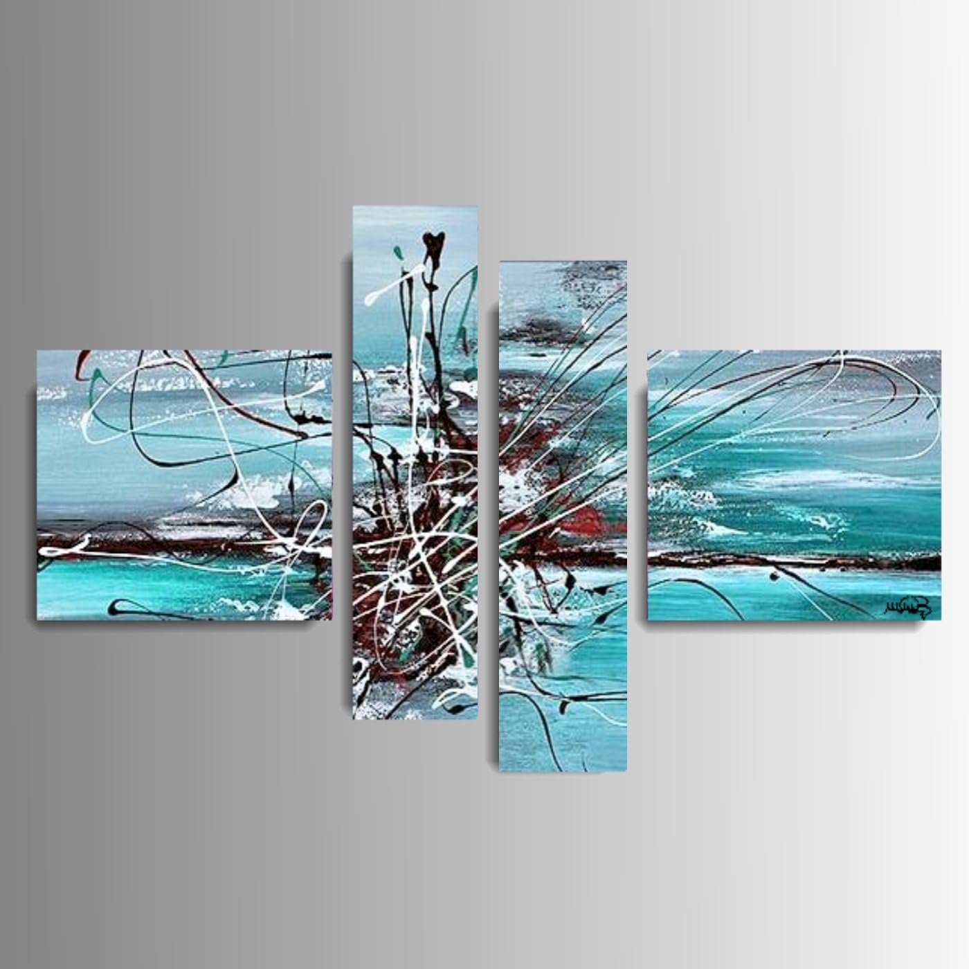 Art Mmb Turchese 4 Quadri Moderni Astratto Dipinto A Mano Su Tela Gia Intelaiato Amazon It Casa E Cucina