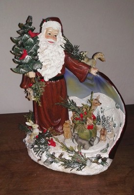 Babbo Natale Con Mantello E Animali In Movimento Decorazione Natalizia Ebay