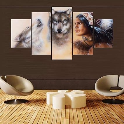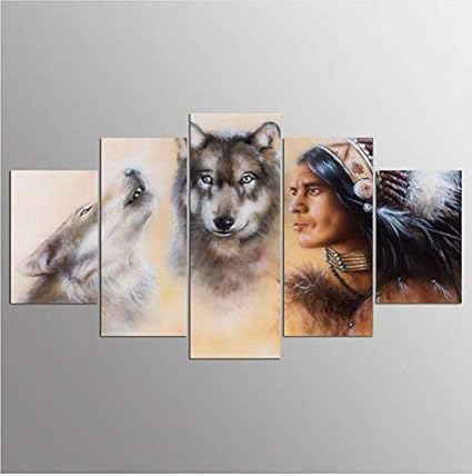 Fgvbwe4r Modern Home Wall Art Decor Quadri Quadro 5 Pezzi Astratti Nativi Americani Lupi Hd Stampato Dipinto Tela Poster Xl Amazon It Casa E Cucina