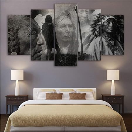 Mddjj Murale Quadri Su Tela Wall Art Framelesswork 5 Pezzi Indiani Nativi Americani Feathered Ritratto Pittura Stampe Modulari Poster Home Decor Amazon It Fai Da Te