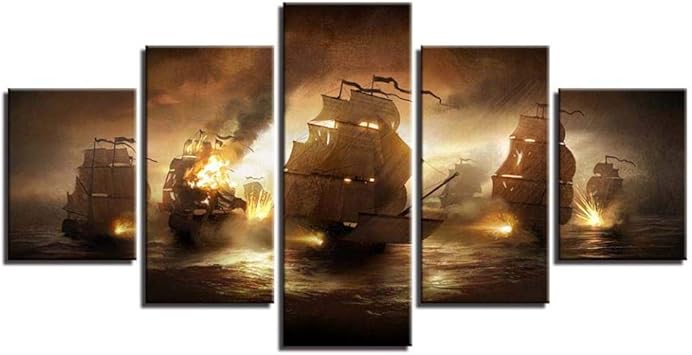 Yyjyxd Stampe Su Tela Quadri Modulari Wall Artwork 5 Panel Battaglie Navali Navi Fiamma Bruciato Pittura Home Decor Poster Soggiorno Con Cornice 16x24 32 40inch With Frame Amazon It Fai Da Te