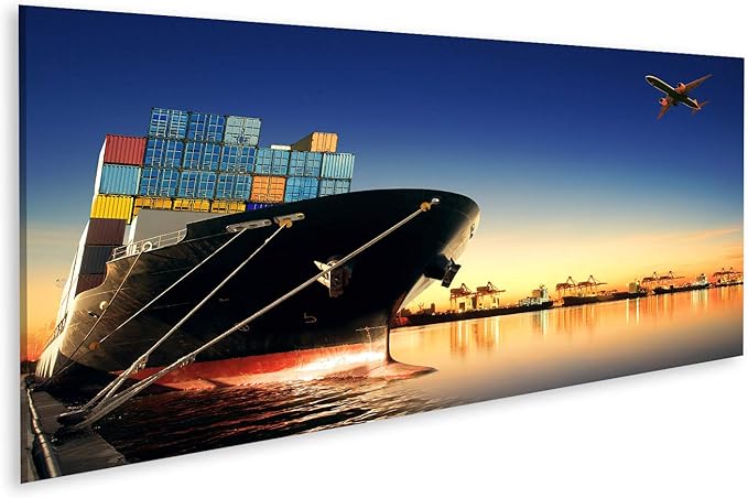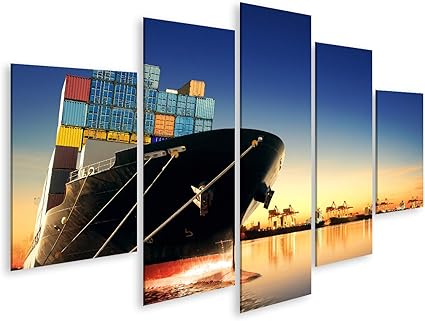 Islandburner Quadro Stampa Su Tela Quadri Moderni La Nave Portacontainer In Importazione Il Porto Di Esportazione Contro Il Carico Del Cantiere Navale Usa La Bella Luce Del Mattino Per Il Tras Amazon It