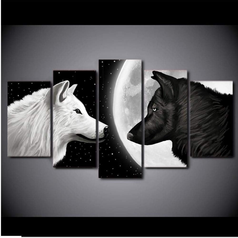 Dybtk Lupo E Luna Bianchi E Neri Dipinti Su Tela Dipinti Murali Stampe Darte Per Soggiorno Quadri Decorativi 50x100 Cm Senza Cornice Tele Hobby Creativi