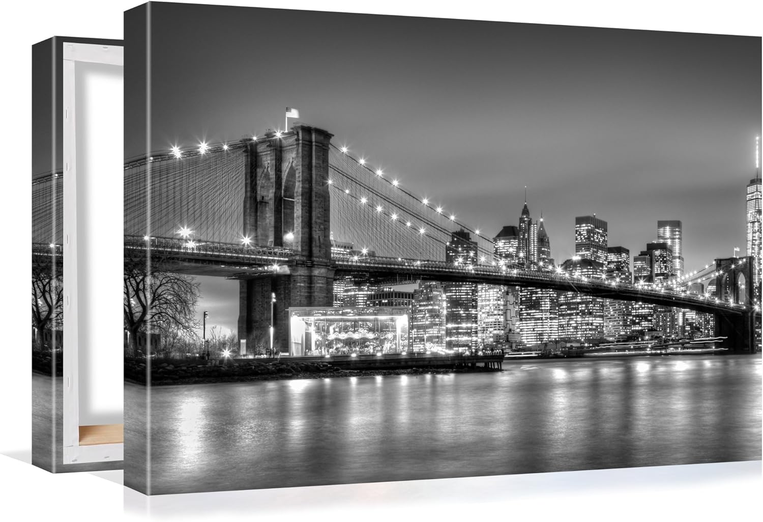 Ponte Di Brooklyn Bianco E Nero Di New York City Alla Notte Costruzioni Citta Di Grattacieli Quadro In Tela Arte E Decorazione 4 Diverse Dimensioni 100x60cm Allungato Su Telaio In Legno Arte