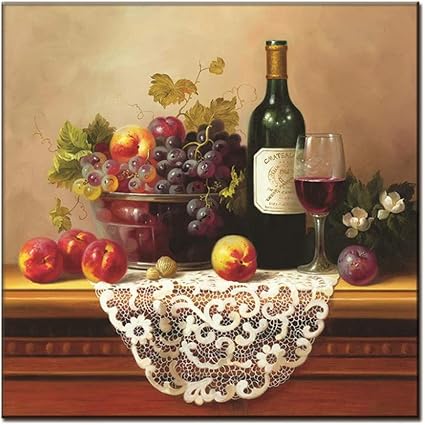 Hsffbhfbh Quadro Su Tela Natura Morta Pittura Ad Olio Con Frutta E Vino Stampato Su Tela Hd Pittura A Spruzzo Immagine A Parete Per Sala Da Pranzo 70x70 Cm Senza Cornice Amazon It