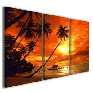 Quadri Moderni Tela Arte Paesaggio 120x90 3pz Mare Tramonto Isola Palme Rosso Ebay