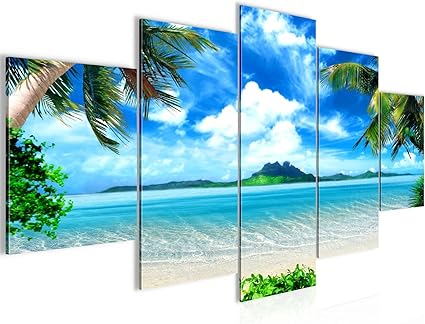 Runa Art Quadri Spiaggia Palme 200 X 100 Cm 5 Pezzi Xxl Decorazione Murale Design Blu Beige 603351a Amazon It Casa E Cucina