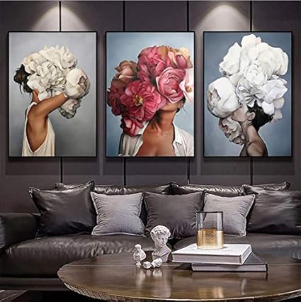 Quadri Astratti Moderni Su Tela Fiori Donna Arte Murale Pittura Piuma Poster E Stampe Immagini A Parete Per Soggiorno Decor Senza Cornice 50cmx70cmx3 Pz Amazon It Casa E Cucina