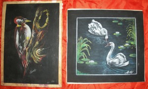 Coppia Di Pastelli A Cera Su Cartoncino Nero Matita Carboncino Animali Uccelli Ebay