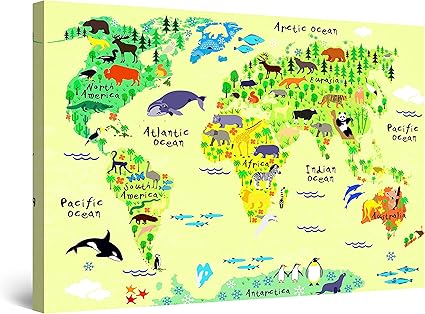 Startonight Quadro Su Tela Mappa Del Mondo Colorata Per I Bambini Quadri Moderni Animali Stampe Camere Da Letto 60 X 90 Cm Amazon It Casa E Cucina