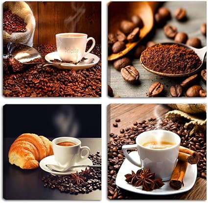 Quadri Moderni Caffe 4 Pz Cm 30x30 Cad Stampa Su Tela Canvas Caffe Coffee Arredamento Arte Astratto Xxl Arredo Per Soggiorno Salotto Camera Da Letto Cucina Ufficio Bar Ristorante Amazon It Casa E