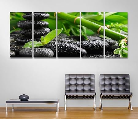 Quadri L C Italia Zen Natura Quadro Moderno Bamboo Sassi Per Soggiorno Camera Da Letto Bagno Centro Benessere 5 Pezzi Grandi 190 X 70 Stampe Su Tela Da Parete Amazon It Casa E Cucina