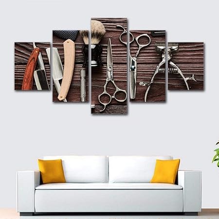 Csdecor Stampe E Quadri Su Tela 5 Pezzi Strumenti Per Parrucchieri Forbici Rasoio Arte Da Parete Da Barbiere Soggiorno Casa Decor Dimensioni D Amazon It Casa E Cucina