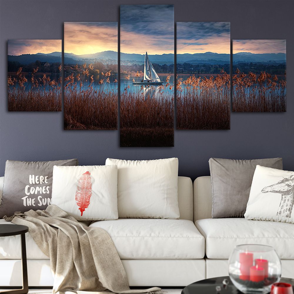 Acquista La Barca Nel Lago Tela Poster Home Decor Wall Art Quadro 5 Pezzi Quadri Soggiorno Hd Stampe Immagini Moderne A 18 18 Dal Niartwork Dhgate Com
