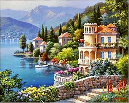 Kit Fai Da Te Per La Creazione Di Quadri 5d Con Cristalli Perline E Strass Da Incollare E Punto Croce Soggetti Paesaggio Mare E Casa B 45x60cm Amazon It Casa E Cucina