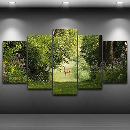 Baobaoshop Quadro Quadro Stampa Hd Pittura Quadri Modulari 5 Pannelli Foresta Piccoli Cervi Poster Decorazioni Per La Casa Moderne Soggiorno Tela Cornice Amazon It Casa E Cucina