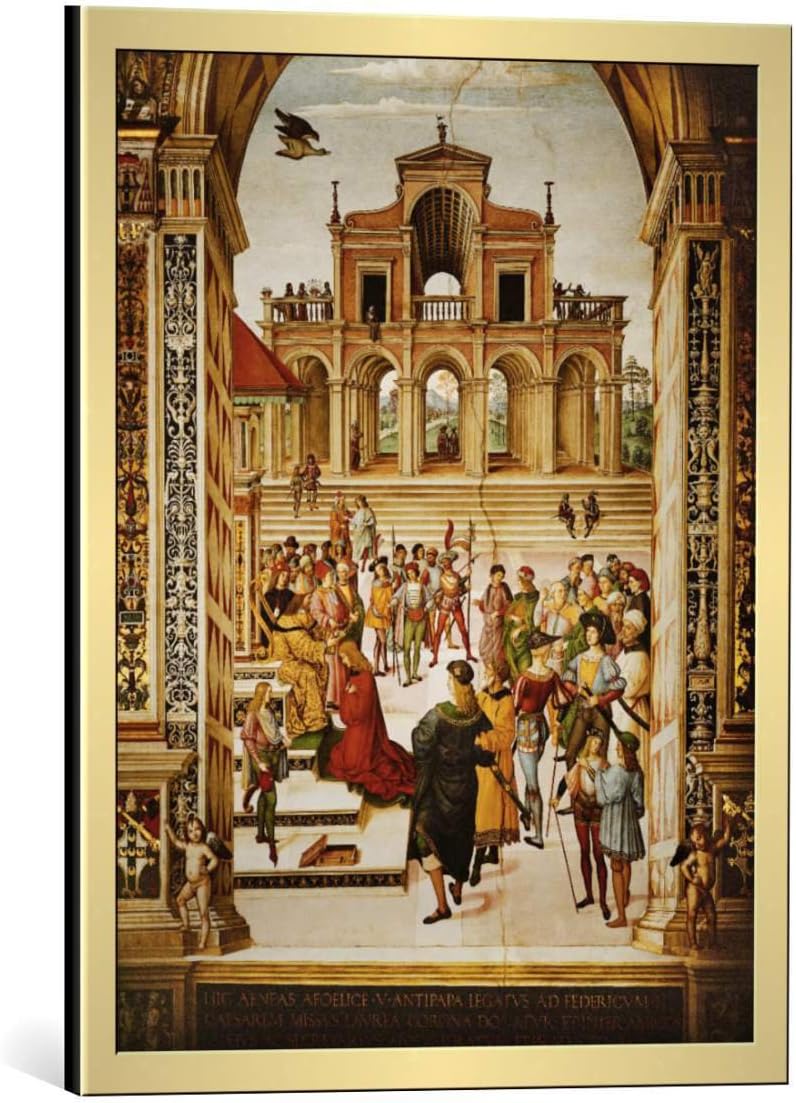Kunst Fur Alle Quadro Con Cornice Bernardino Pinturicchio Emperor Friedrich Iii Crowning Aeneas Si Stampa Artistica Decorativa Cornice Di Alta Qualita 40x50 Cm Oro Spazzolato Amazon It Casa E Cucina
